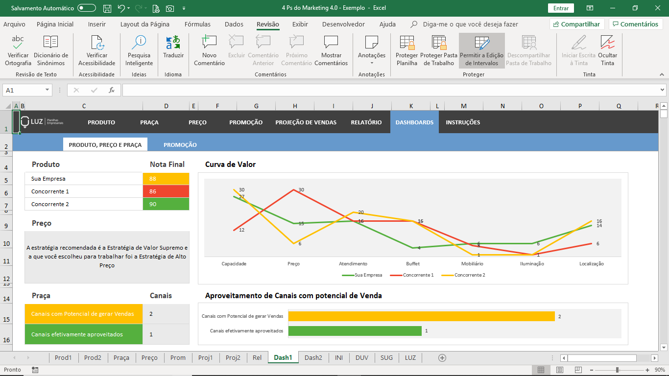 Planilha dos 4P's de Marketing (Marketing Mix)
