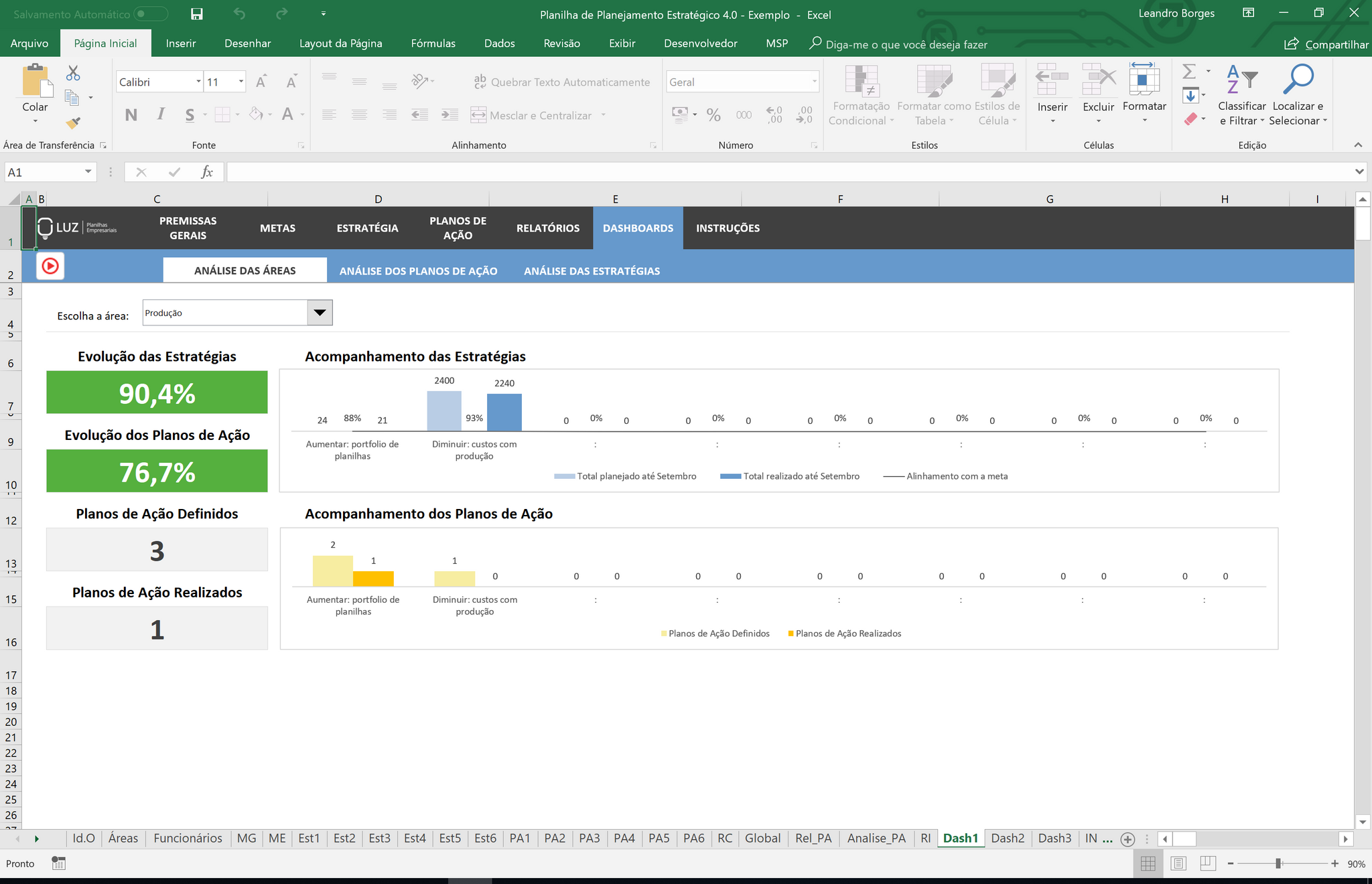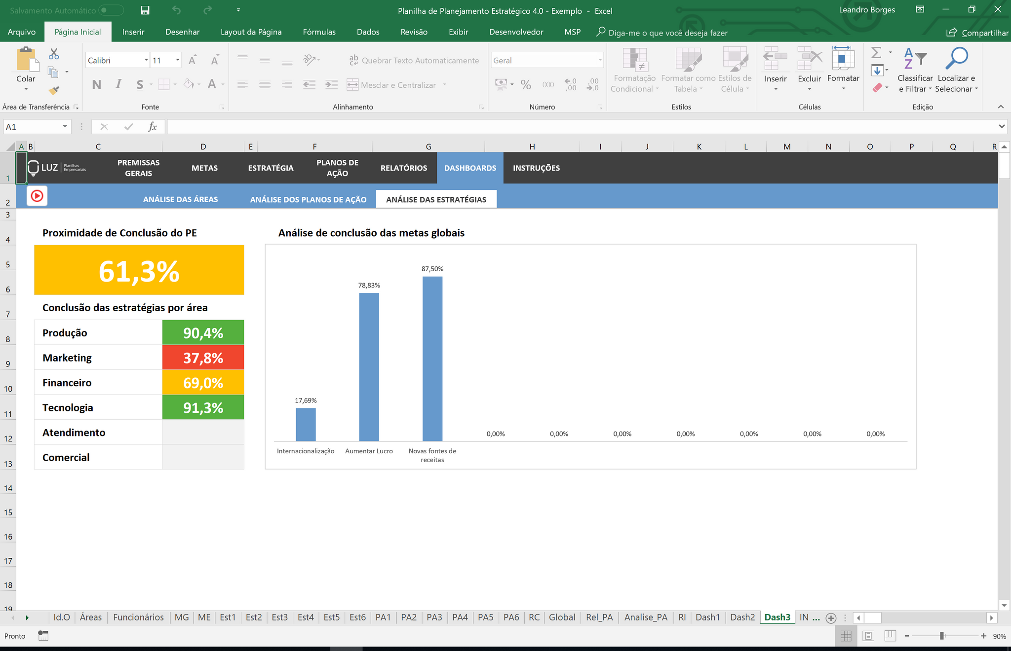 Toda empresa luta para conseguir implementar suas estratégias e vencer no mercado. Com a nossa planilha, você vai conseguir manter o foco do seu negócio e acompanhar se o seu plano está funcionando através de metas e planos de ação. Automaticamente, você vai receber relatórios apontando o que está dando certo e onde você precisará melhorar!